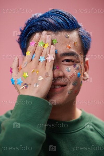 Креативный зумер со стикерами на лице