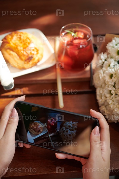 Женщина, фотографирующая обед