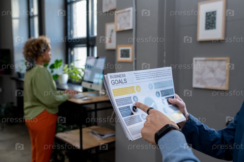 Рука молодого бизнесмена, указывающего на бумагу с деловыми целями