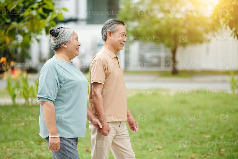 Старшая пара гуляет в парке