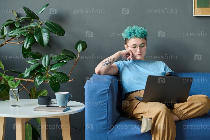 Женщина смотрит видео на ноутбуке