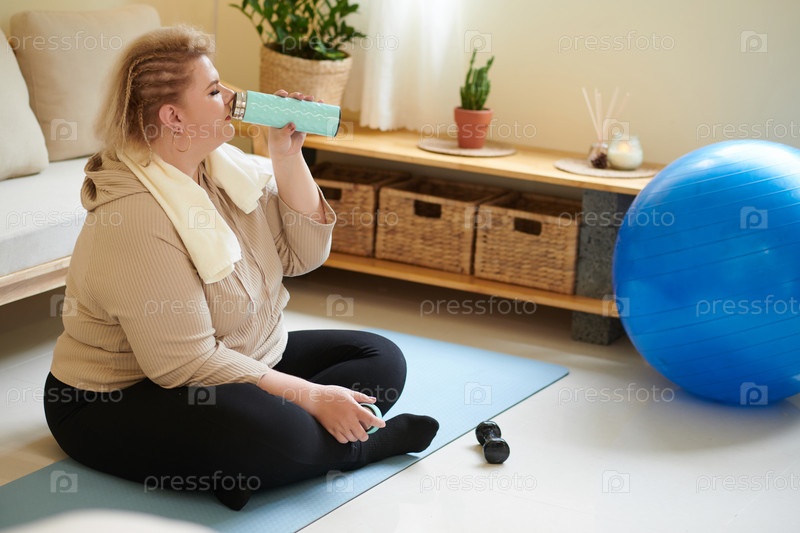 Женщина пьет после тренировки