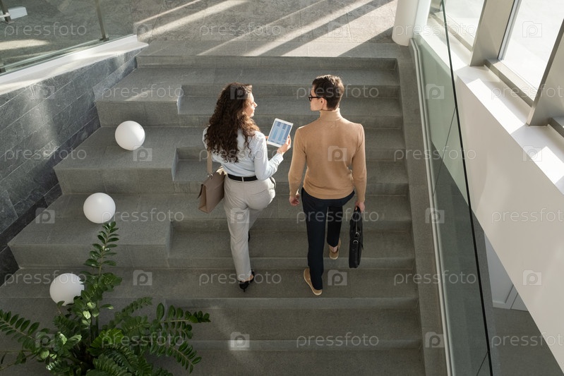 Два молодых уверенных в себе менеджера высокотехнологичной компании ведут дискуссию