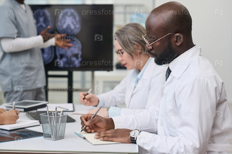 Врачи делают заметки во время медицинской конференции