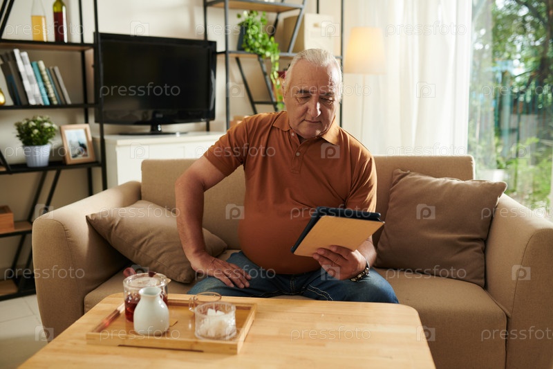 Старший мужчина читает электронную книгу