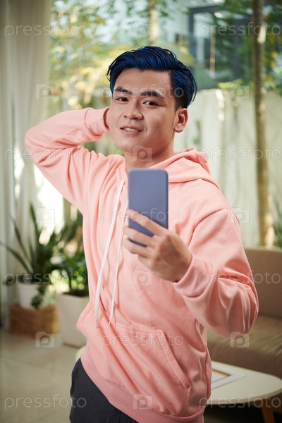 Молодой человек позирует для селфи