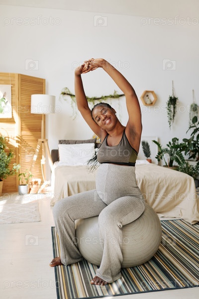Беременная женщина тренируется на фитнес-боле