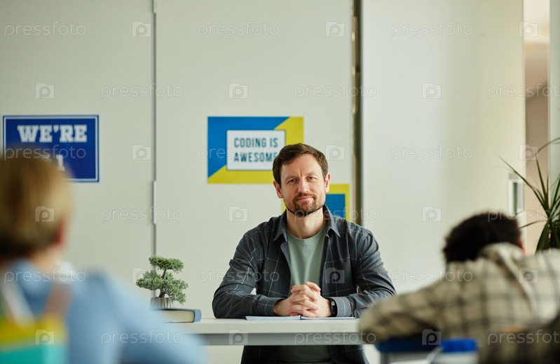 Учитель наблюдает за классом Мужчина