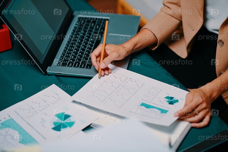 Деловая женщина анализирует графики