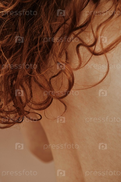 Женщина без рубашки с рыжими волосами