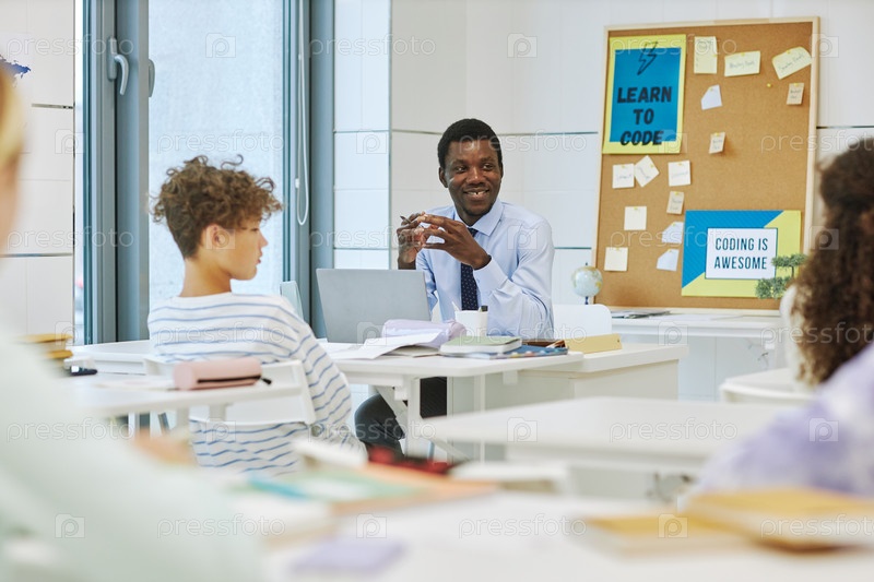Молодой учитель в классе