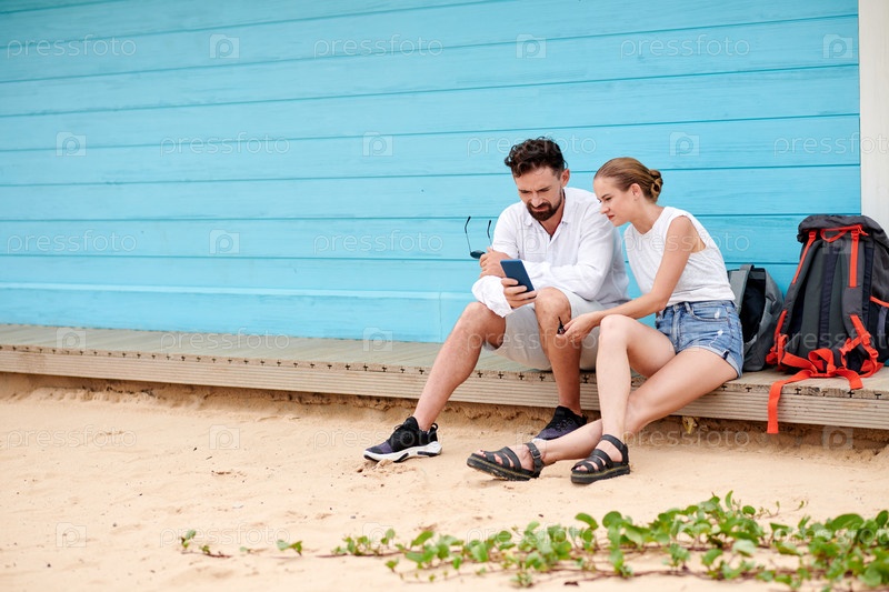 Пара туристов, пользующихся мобильным телефоном