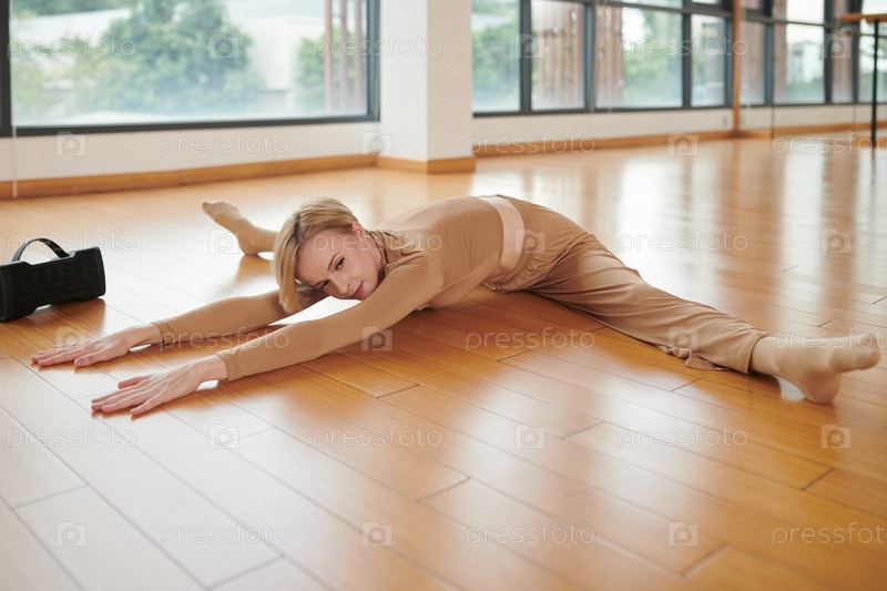 Гибкая женщина, делающая боковые разделения