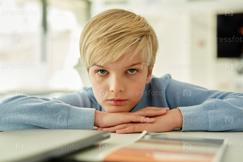 Скученный мальчик в школе Front View