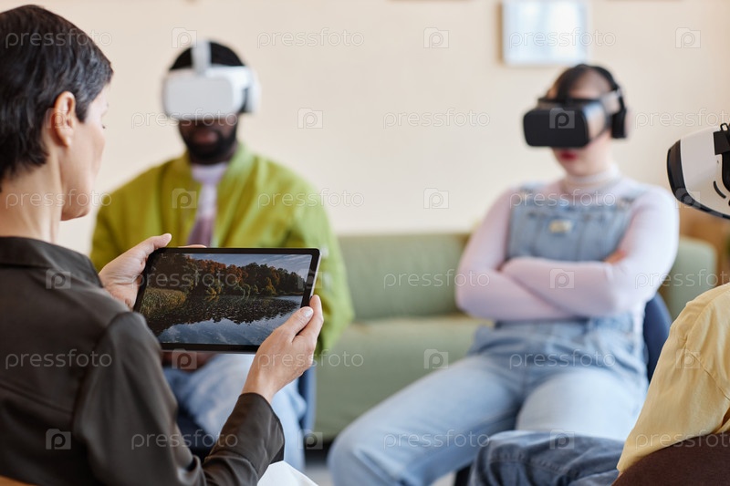 Психолог проводит сессию виртуальной терапии
