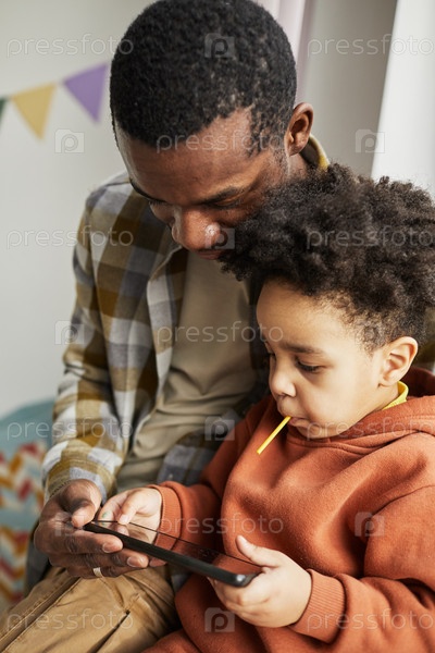 Показывая смартфон отцу маленького мальчика