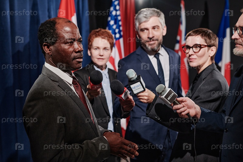 Политик дает интервью на конференции