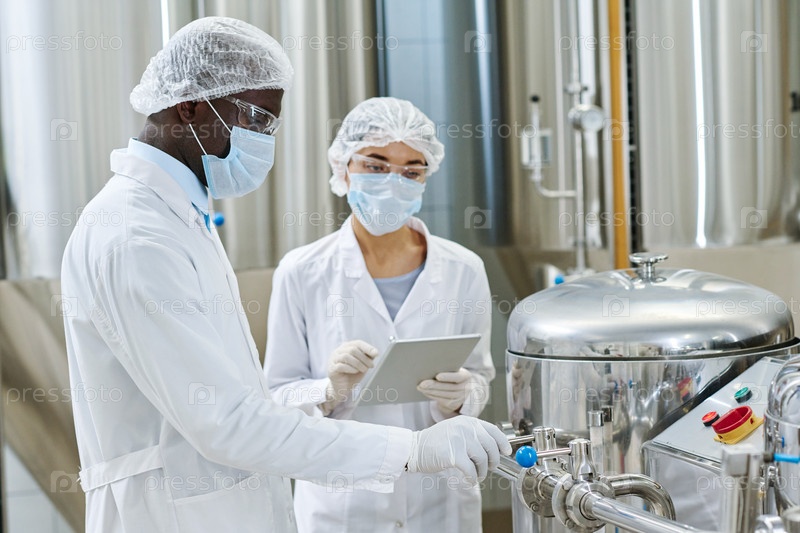 Пара инженеров контролируют работу машин