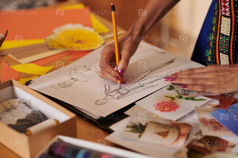Модный дизайнер рисует эскизы