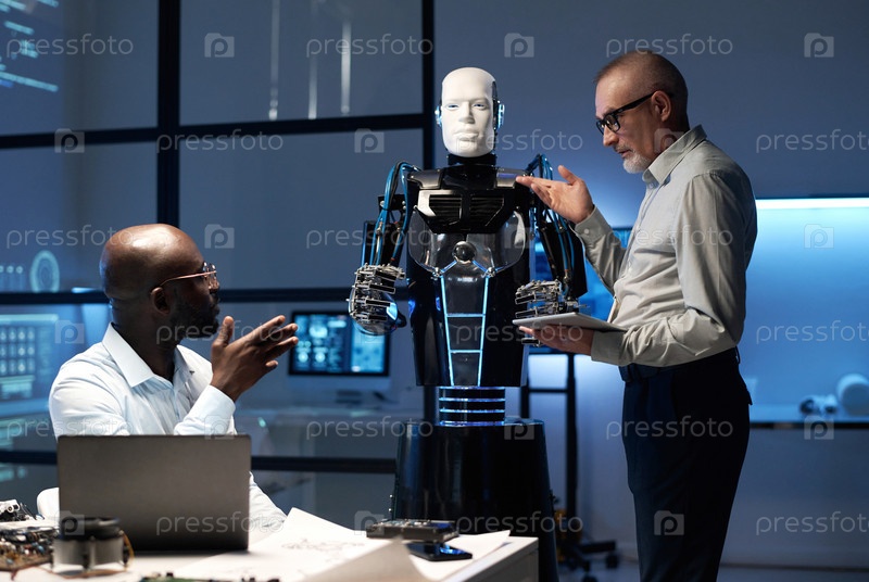 Инженеры обсуждают проектирование робота в команде