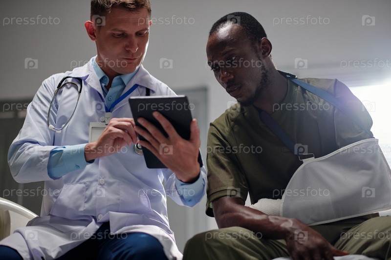 Врач и пациент обсуждают рентген руки