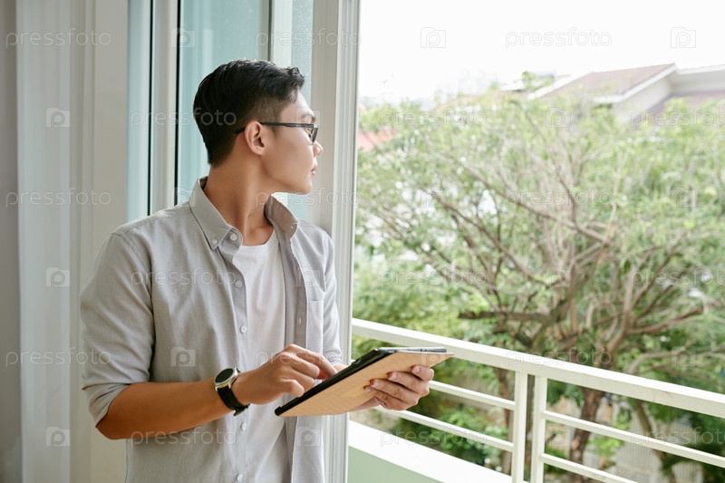 Пенсивный бизнесмен с планшетным компьютером