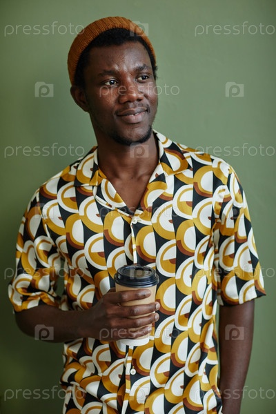 Черный молодой человек, носящий печатную рубашку