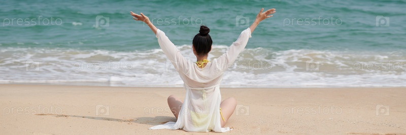 Женщина, приветствующая восходящее солнце