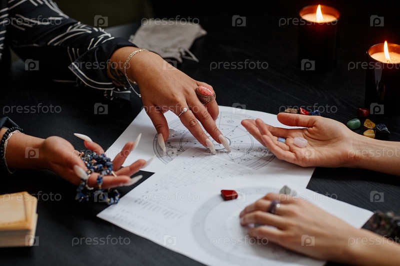 Фортуна Теллер читает звезды для молодой женщины