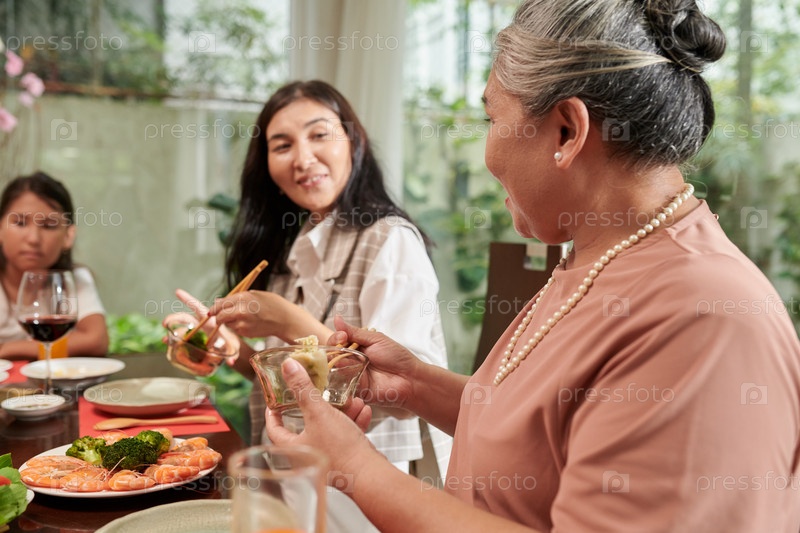 Семья ест традиционные блюда