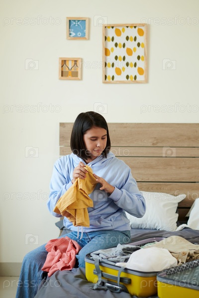 Девушка-подросток, собирающая чемодан