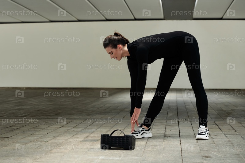 Молодая девушка тренируется под музыку