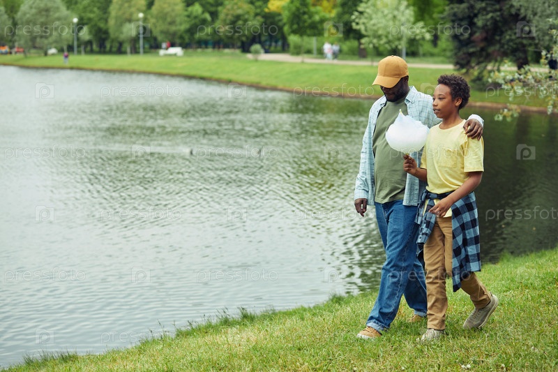 Отец и сын гуляют в парке
