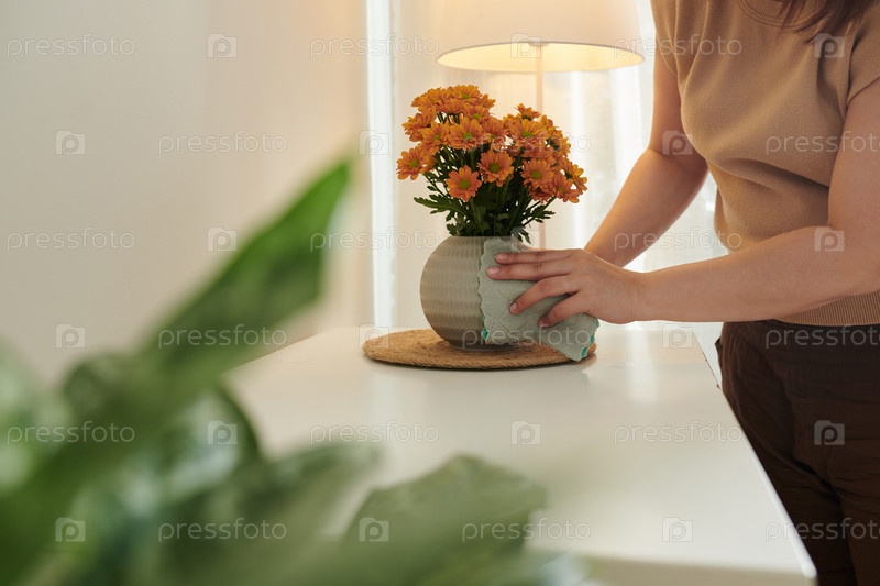 Женщина, стирающая вазу