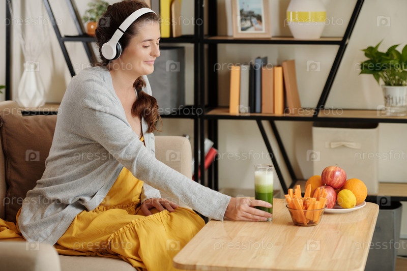 Беременная женщина пьет зеленый смузи