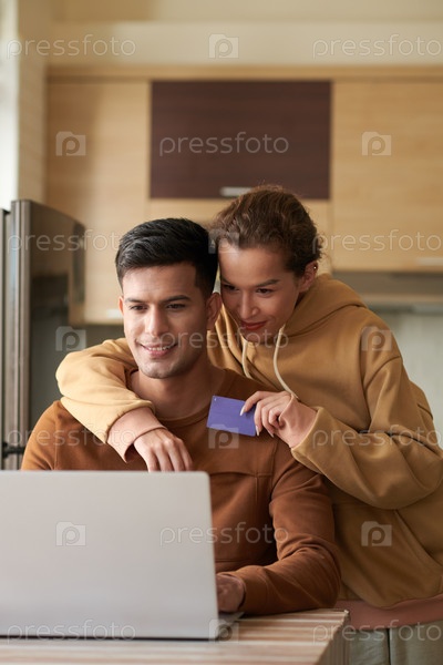 Пара выбирает еду, чтобы заказать онлайн