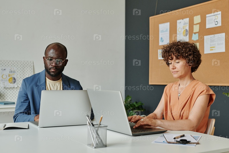 Коллеги работают в Интернете на компьютерах