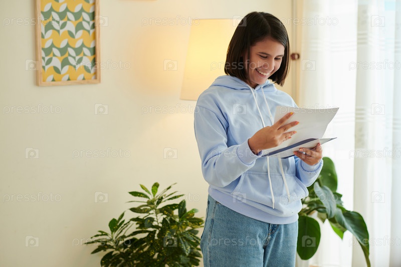 Радостная девушка Открывающее письмо из колледжа