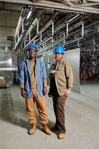 Африканские ручные рабочие в жестких шляпах на фабрике