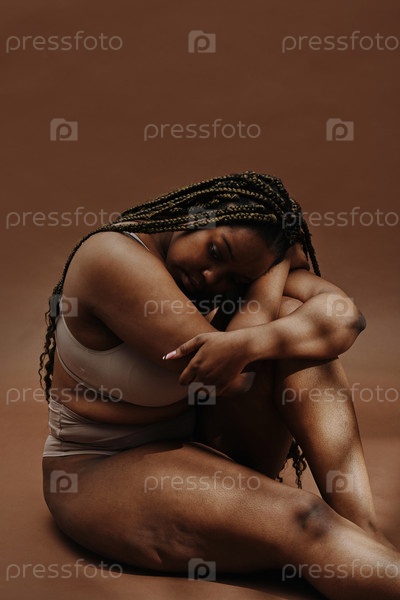 Портрет африканской толстой женщины на коричневом фоне