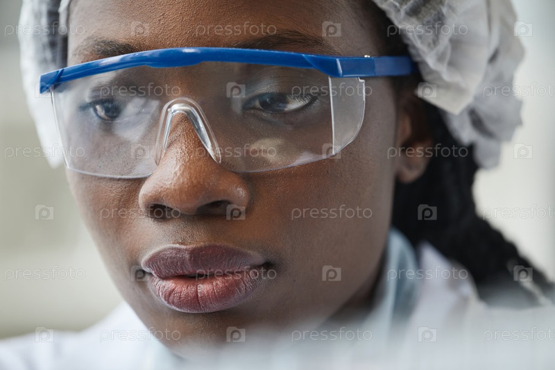 Чернокожая женщина, работающая в лабораторном Close-up