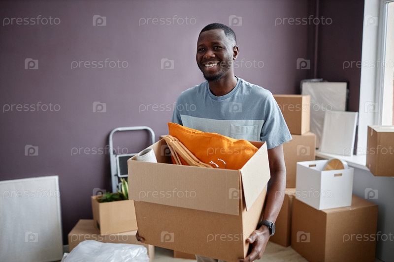 Мужчина, несущий коробки в новом доме