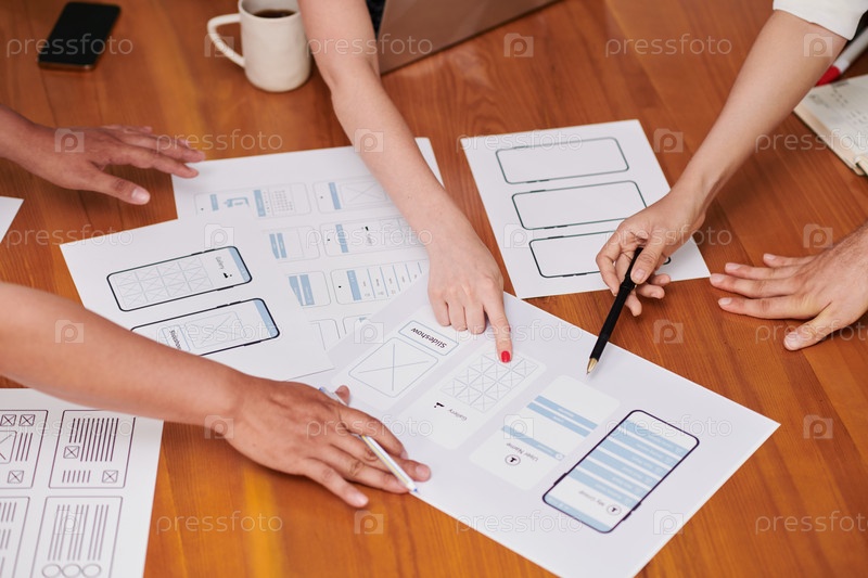 Менеджер и дизайнеры обсуждают прикладный интерфейс