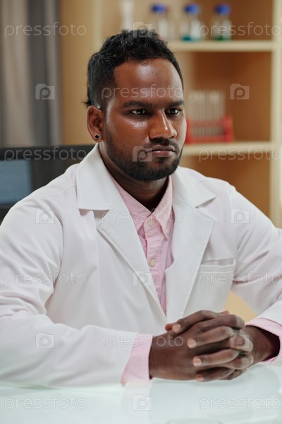 Молодой серьезный исследователь или клиницист, ищущий будущее по месту работы