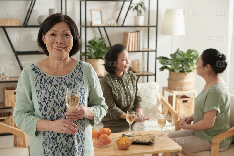 Старшая женщина со стаканом вина