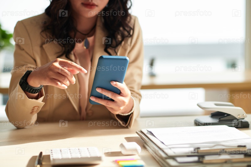 Деловая женщина проверяет текстовые сообщения