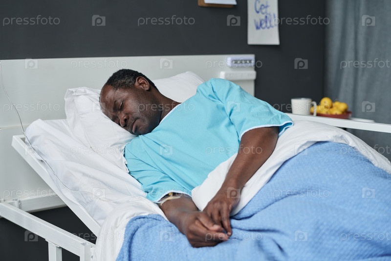 Мужчина, отдыхающий на кровати в больничном отделении