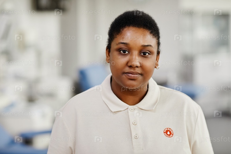 Портрет женщины с наклейкой донора крови