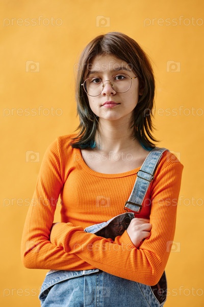Милая девочка-подросток в комбинезонах