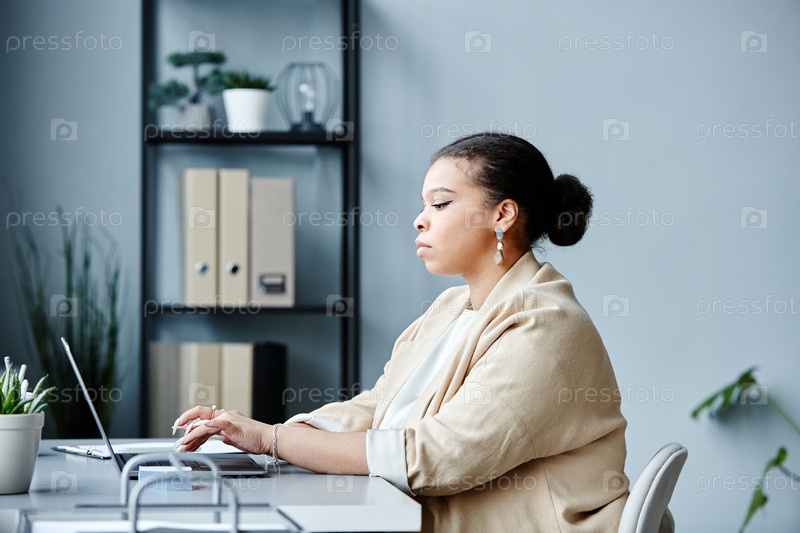 Черная бизнесвумен на рабочем месте Side View